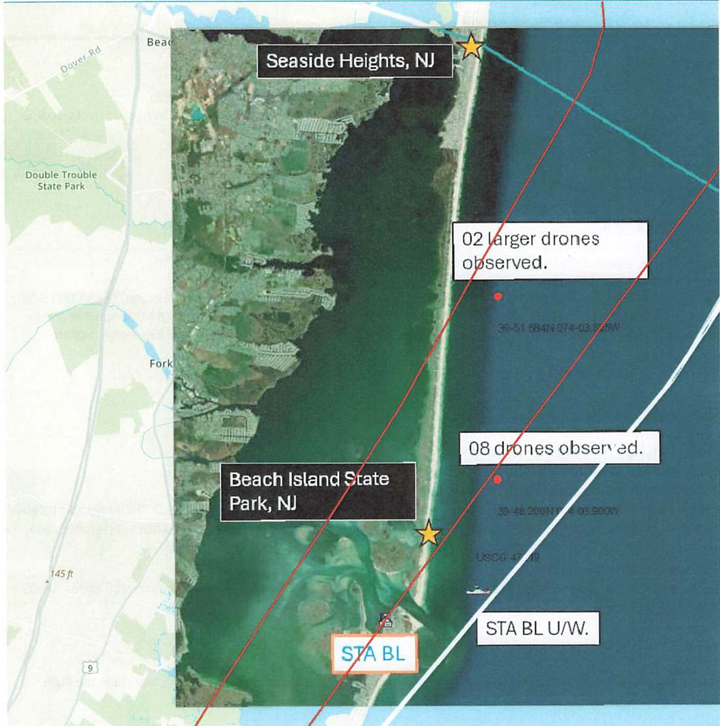 On the evening of 8 December 2024, the Ocean County Sheriff’s Office informed the U.S. Coast Guard that Island Beach State Park Police had ‘sighted approximately 50 drones (estimated 4' long and flying approximately 60 mph) coming from offshore.’