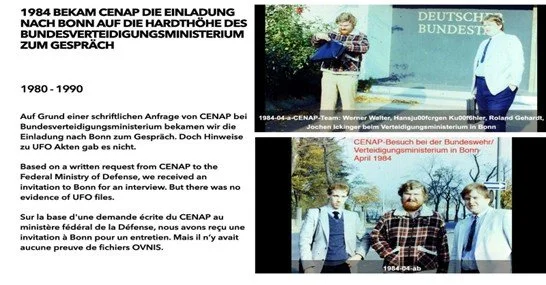 Above: CENAP’s report of its meeting with the BMVg in Bonn, Germany, 1984. Top picture, from the left: Werner Walter and Hans Jürgen Köhler; Bottom picture, from left: Roland Gehardt, Werner Walter and Hans Jürgen Köhler